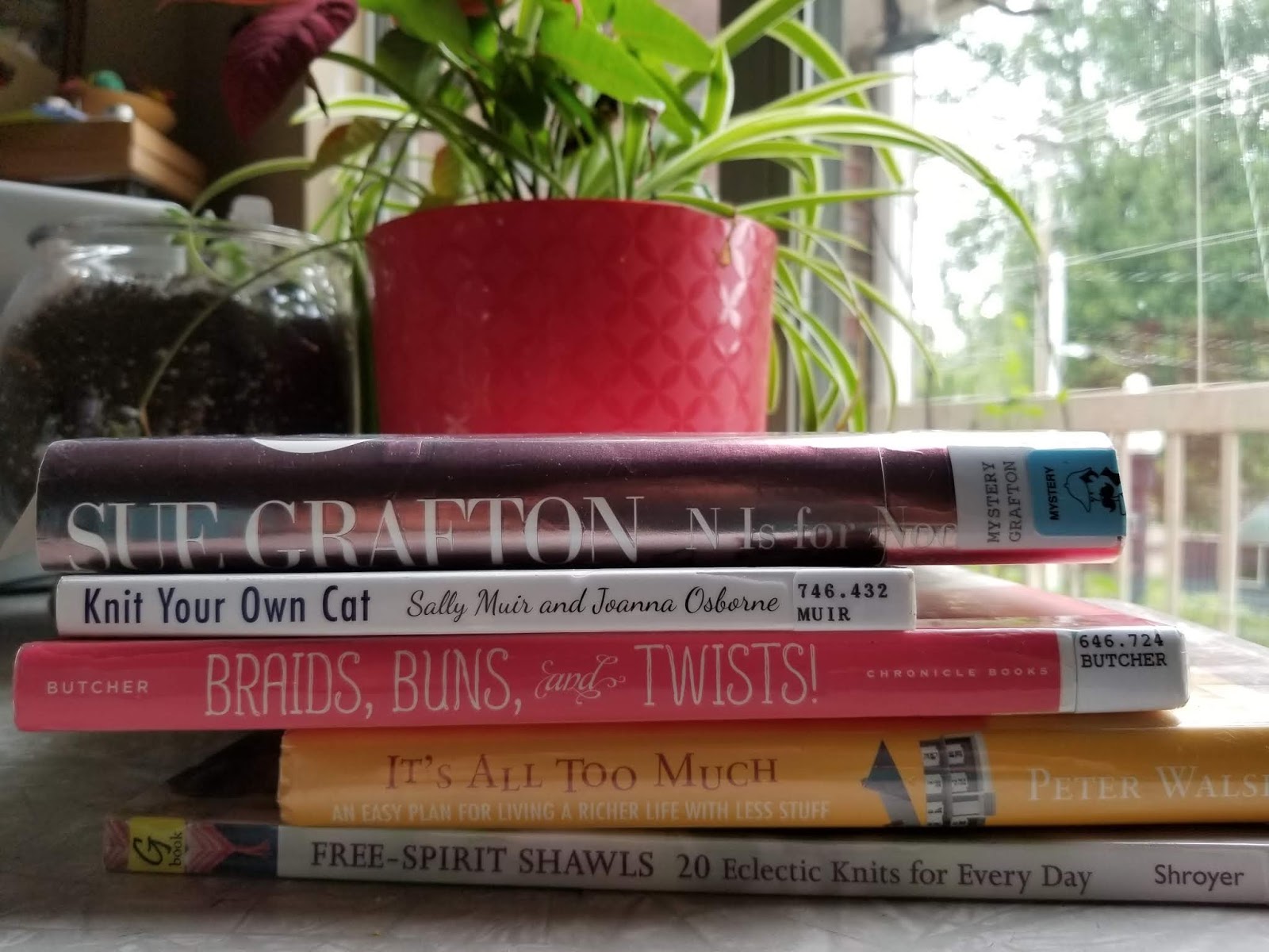 -Not unrelated to the last thing, we're on a bit of a no-spend at the moment! It's going okay. I still signed Evelyn up for swimming lessons and she had her first lesson today. After she ate her little sack lunch we went to the library and read for over an hour and a half. This is mostly what I checked out.